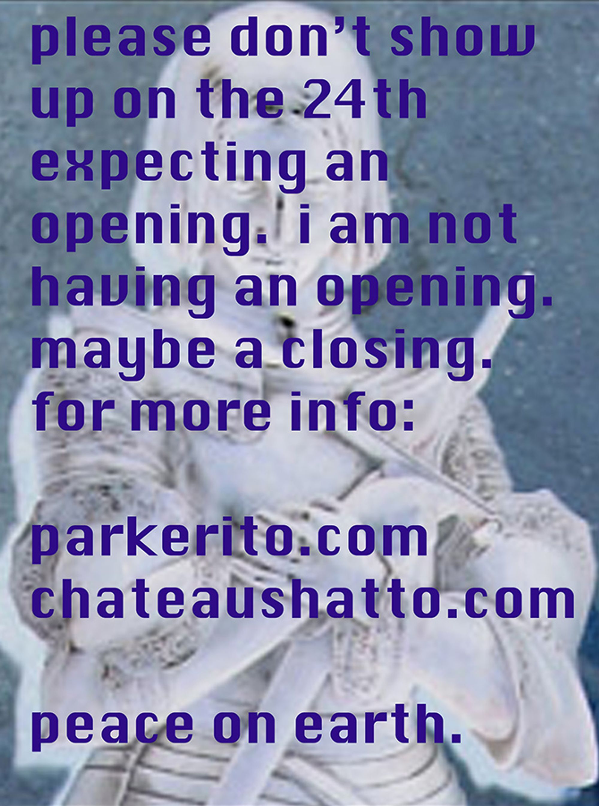 undefined is an exhibition at Château Shatto on view from Invalid Date NaN, NaN.